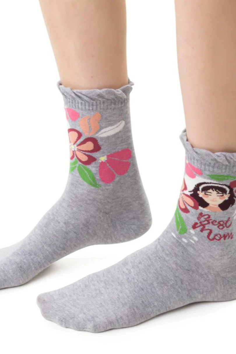 Skarpety damskie bawełniane z okazjonalnymi motywami. Płaski szew, nieuciskający ściągacz zapewniają wygodę i komfort użytkowania.