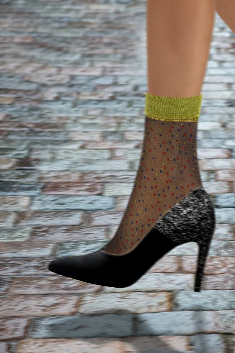 Dámske ponožky NYLON BÉŽOVÁ/HOŘČICOVÁ/TEČKY UNICA
