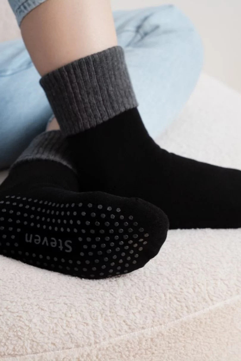 Nekĺzavé dámske froté ponožky s ohrnutým lemom. Model je vyrobený z najkvalitnejšej bavlny. Ponožky sú mäkké a teplé a sú vhodné na chladnejšie dni.