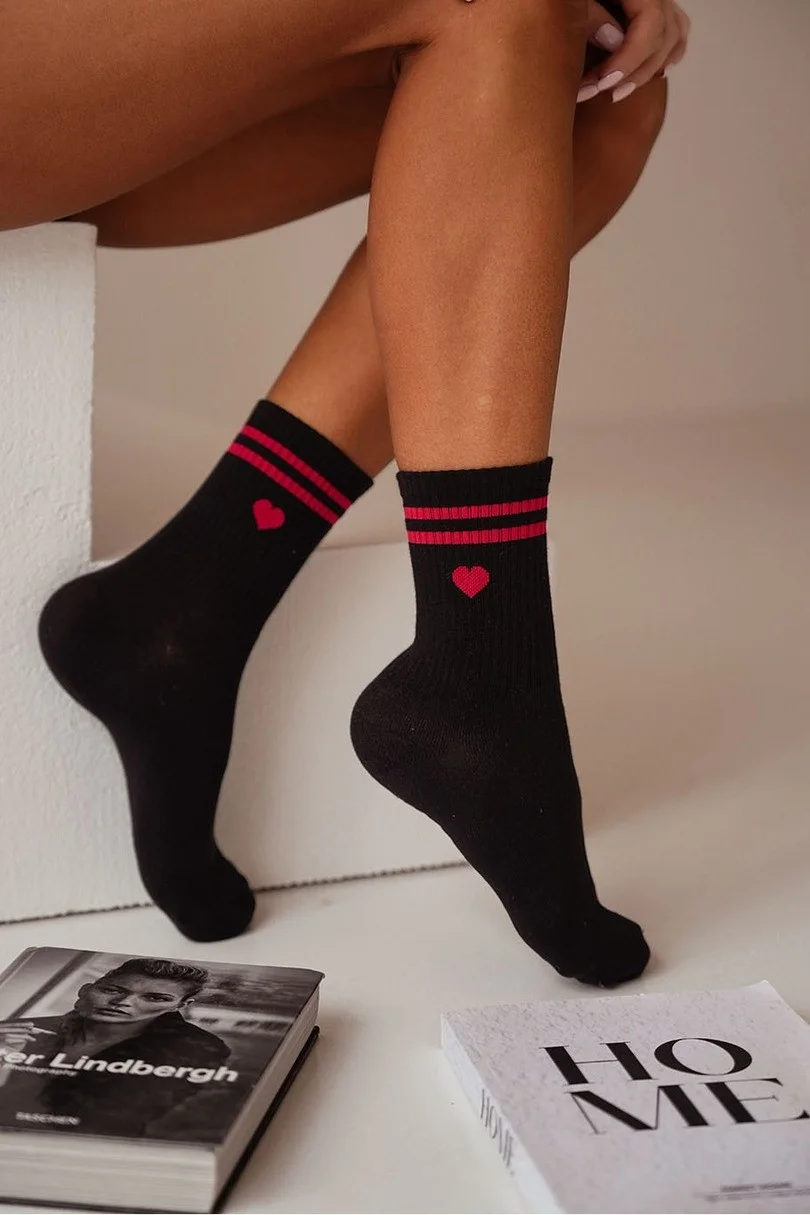 DÁMSKE PONOŽKY SO SRDIEČKOM A PRÚŽKAMI 0200.137 černá 37-41