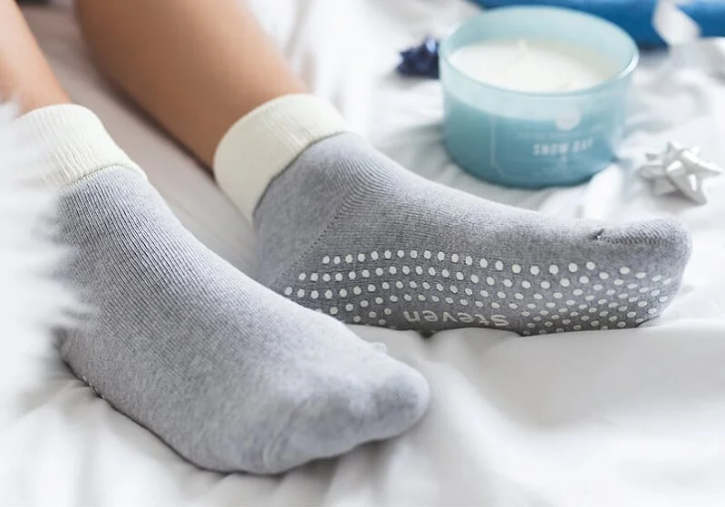 Dámske ponožky s protišmykovou podrážkou. Majú vyhrňovacie, nestahující lem. Z vnútra je prijatie froté. Zloženie: 80% bavlna, 14% polyamid, 4% polypropylén, 2% elastan.