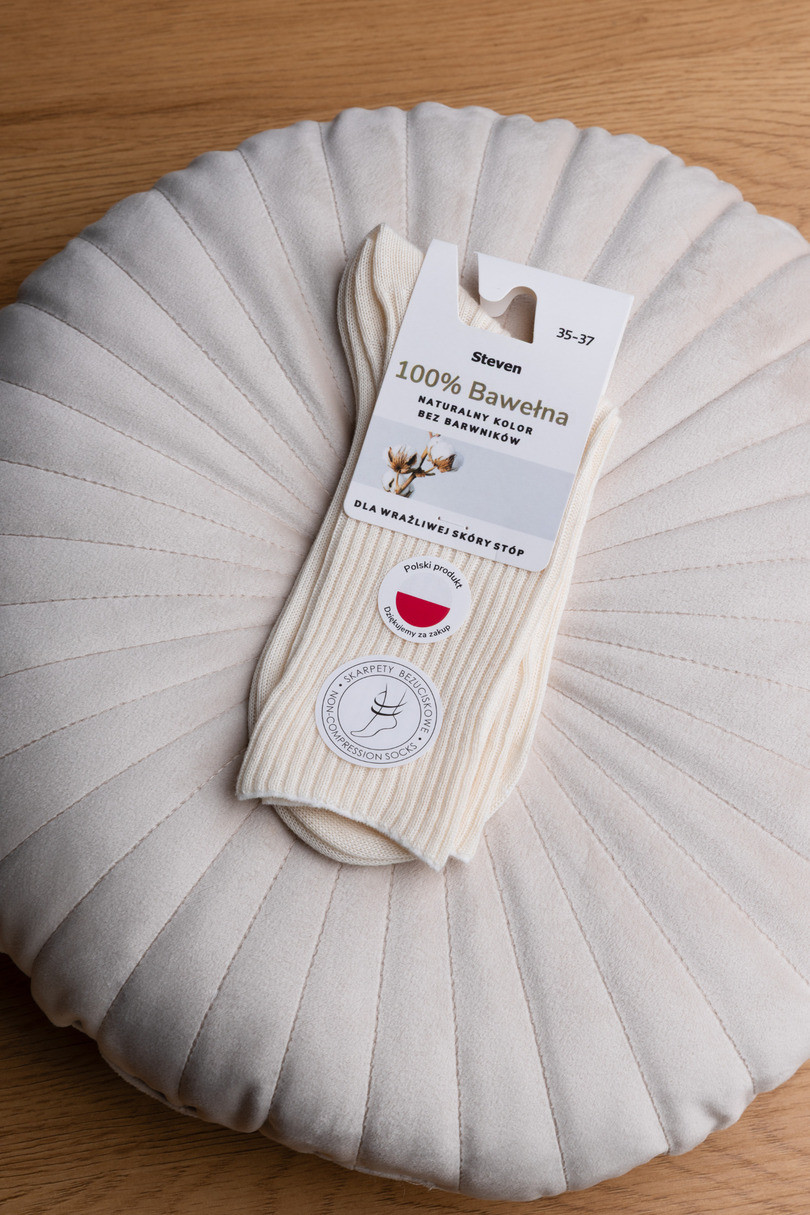 Prírodné, bezpečné a pohodlné - presne také sú ponožky Steven art. 201, vyrobené zo 100 % čistej, vysokokvalitnej bavlny, ideálna voľba pre ženy, ktoré oceňujú prírodné materiály a mäkkosť pri kontakte s pokožkou. Bez umelých farbív, chemikálií a vonných látok sú tieto ponožky zárukou zdravia a pohodlia. Jemná rebrová štruktúra im dodáva eleganciu, zatiaľ čo bezšvová konštrukcia a pás zaručujú dokonalé prispôsobenie a pohodlie počas celého dňa