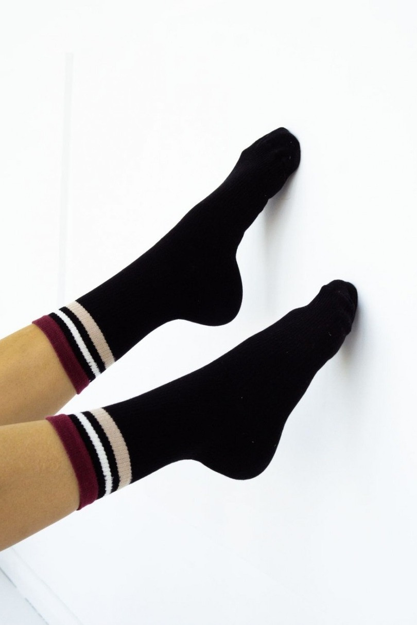 Bavlnené hladké dámske ponožky zakončené prúžkami pre ľudí, ktorí ocenia pohodlie. Sú ideálne na každodenný štýl..