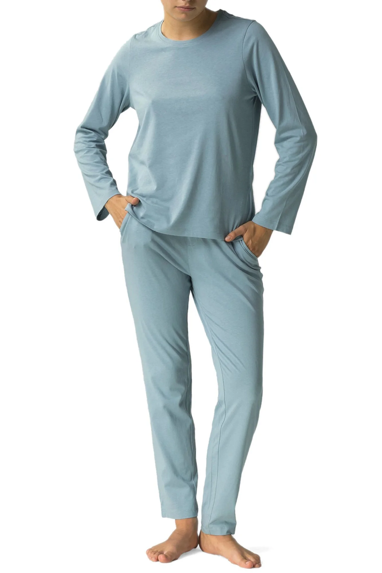 Dámske pyžamo 479 tyrkysové Atlantic - vyrobené z kvalitnej bavlny - modré tričko s dlhým rukávom - dlhé nohavice s vreckami - neodnímateľné gombíky - nastaviteľný pás so šnúrkouZloženie materiálu: 100% bavlna