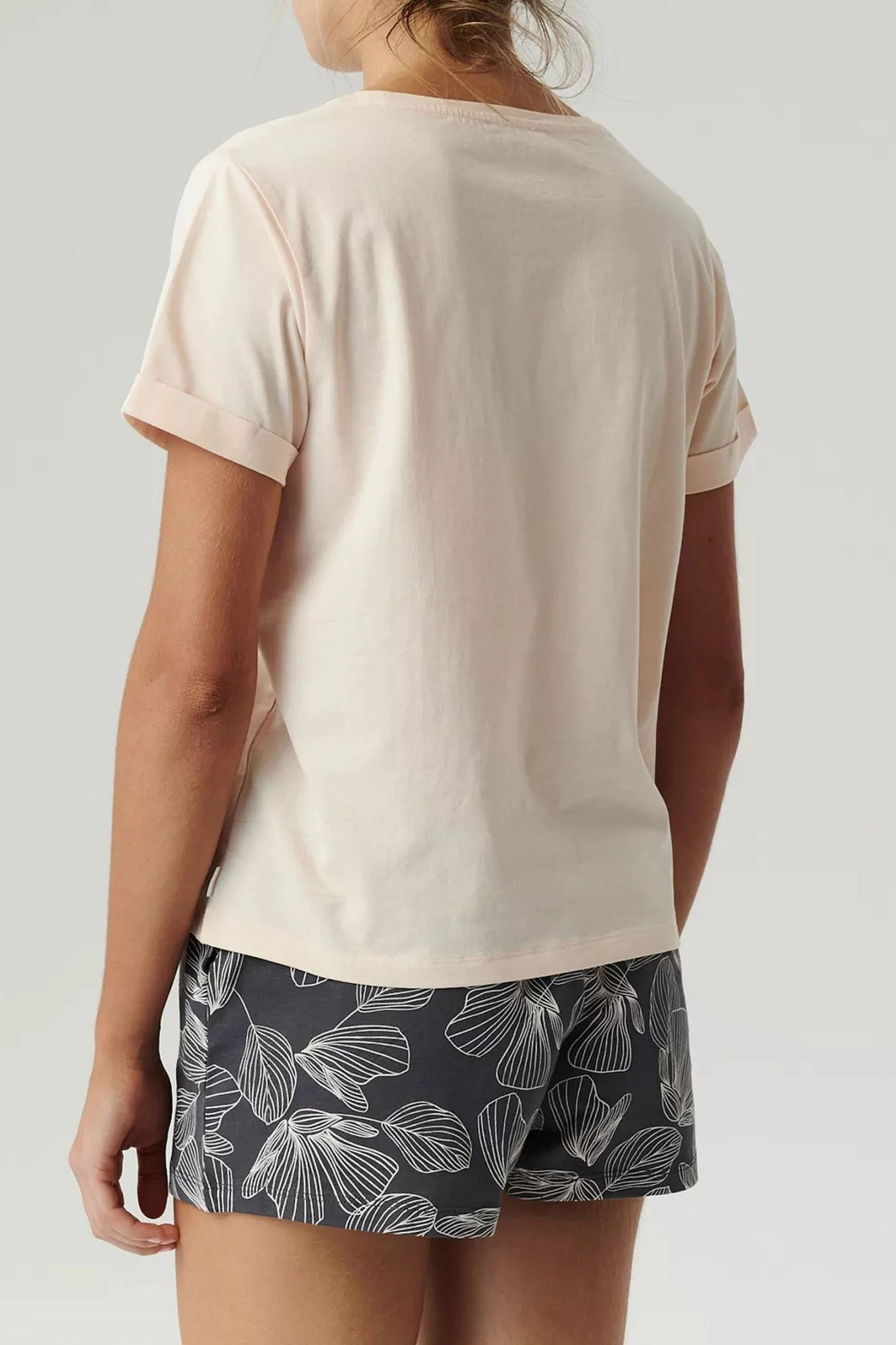 Dámske pyžamo 489 peach Atlantic - vyrobené z kvalitnej bavlny - lososové tričko s krátkym rukávom - vzorované šortky s vreckami - široký elastický pás - priedušná tkanina, ktorá odvádza vlhkosť - strih pre pohodlie a voľnosť pohybu - kvalitná bavlna, ktorá je príjemná na dotyk a jemná k pokožkeZloženie materiálu: 100 % bavlna