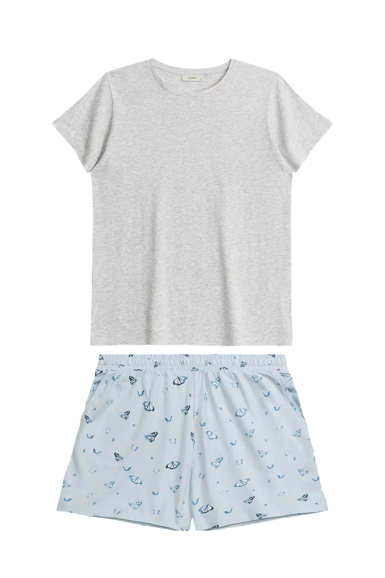 Dámske pyžamo 490/02 sivé Atlantic - vyrobené z kvalitnej bavlny - sivé tričko s krátkym rukávom - vzorované svetlomodré šortky s vreckami - maximálne pohodlie pri nosení - vhodné aj ako domáca relaxačná súpravaZloženie materiálu: 60% bavlna + 40% polyester