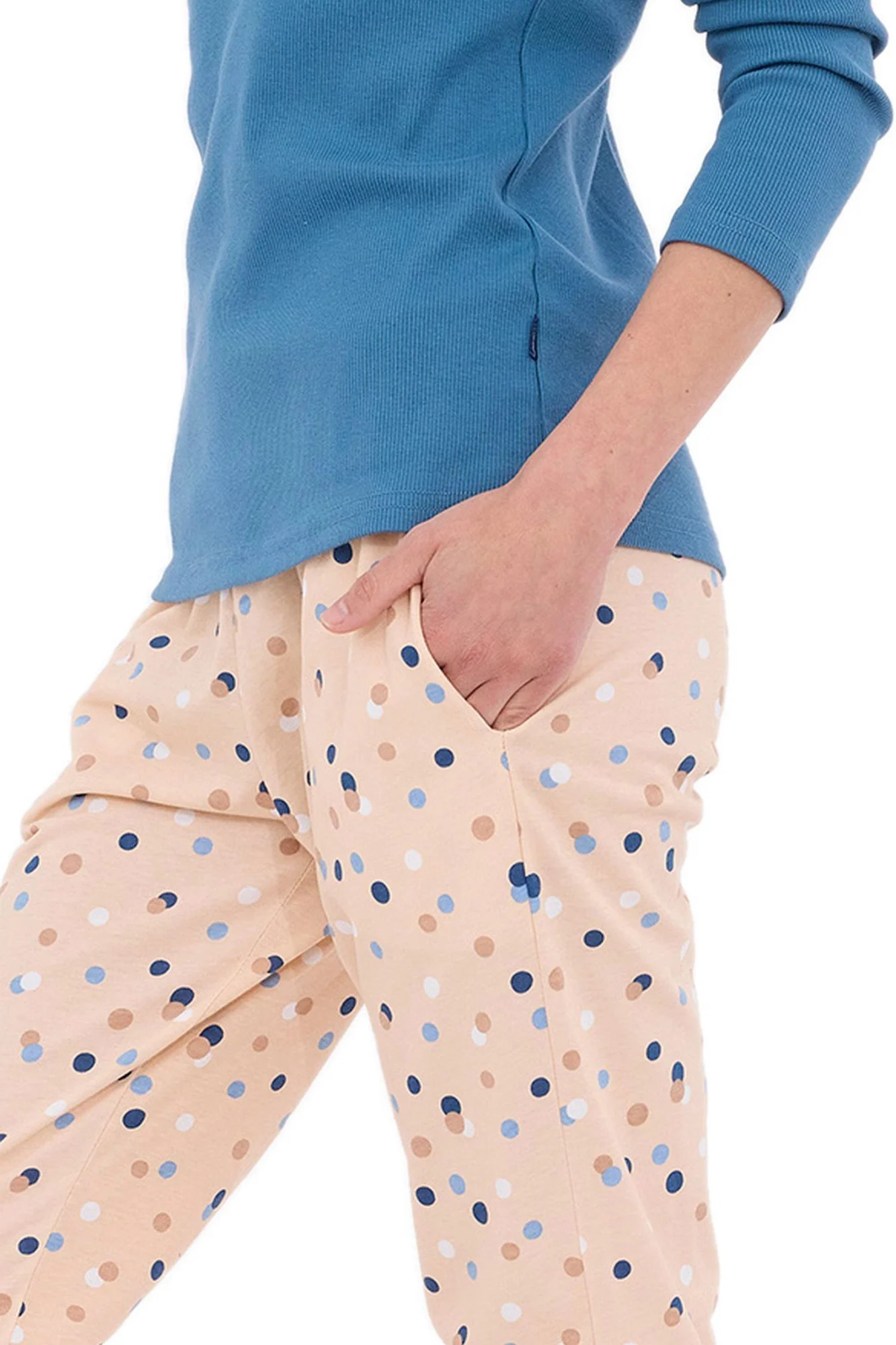 Dámske pyžamo 723/380 Sammy CORNETTE - vyrobené z kvalitnej bavlny - svetlomodré tričko s dlhými rukávmi - výstrih so zapínaním na patentky - vzorované dlhé nohavice s vreckami - nohavice zakončené svetlomodrými manžetami Zloženie materiálu: 100% bavlna Veľkosti pre mužov S M L XL XXL 3XL 4XL 5XL Obvod hrudníka (cm) 92-96 cm 96-100cm 100-104cm 104-108cm 108-112cm 112-116cm 116-122cm 122-128cm Obvod pása (cm) 82-86cm 86-90cm 90-94cm 94-98cm 98-102cm 102-106cm 106-112cm 112-118cm Výška (cm) 164-170cm 170-176cm 176-182cm 182-188cm 188-194cm 188-194cm 188-194cm 188-194cm Veľkosti pre ženy S M L XL XXL 3XL 4XL 5XL Obvod hrudníka (cm) 88-92 cm 92-96cm 96-100cm 100-104cm 104-108cm 108-112cm 112-118cm 118-124cm Obvod pása (cm) 72-76cm 76-80cm 80-84cm 84-88cm 88-92cm 92-96cm 96-102cm 102-108cm Obvod bokov (cm) 92-96cm 96-100cm 100-104cm 104-108cm 108-112cm 112-116cm 116-122cm 122-128cm Výška (cm) 158-164cm 164-170cm 164-170cm 170-176cm 176-182cm 176-182cm 176-182cm 176-182cm Detské veľkosti (roky) 2-3 3-4 5-6 7-8 9-10 11-12 13-14 Obvod hrudníka (cm) 50-54 cm 54-58cm 58-62cm 62-66cm 66-72cm 72-80cm 80-88cm Obvod pása (cm) 48-52cm 50-54cm 52-56cm 54-58cm 56-62cm 60-68cm 64-72cm Výška (cm) 86-92cm 98-104cm 110-116cm 122-128cm 134-140cm 146-152cm 158-164cm