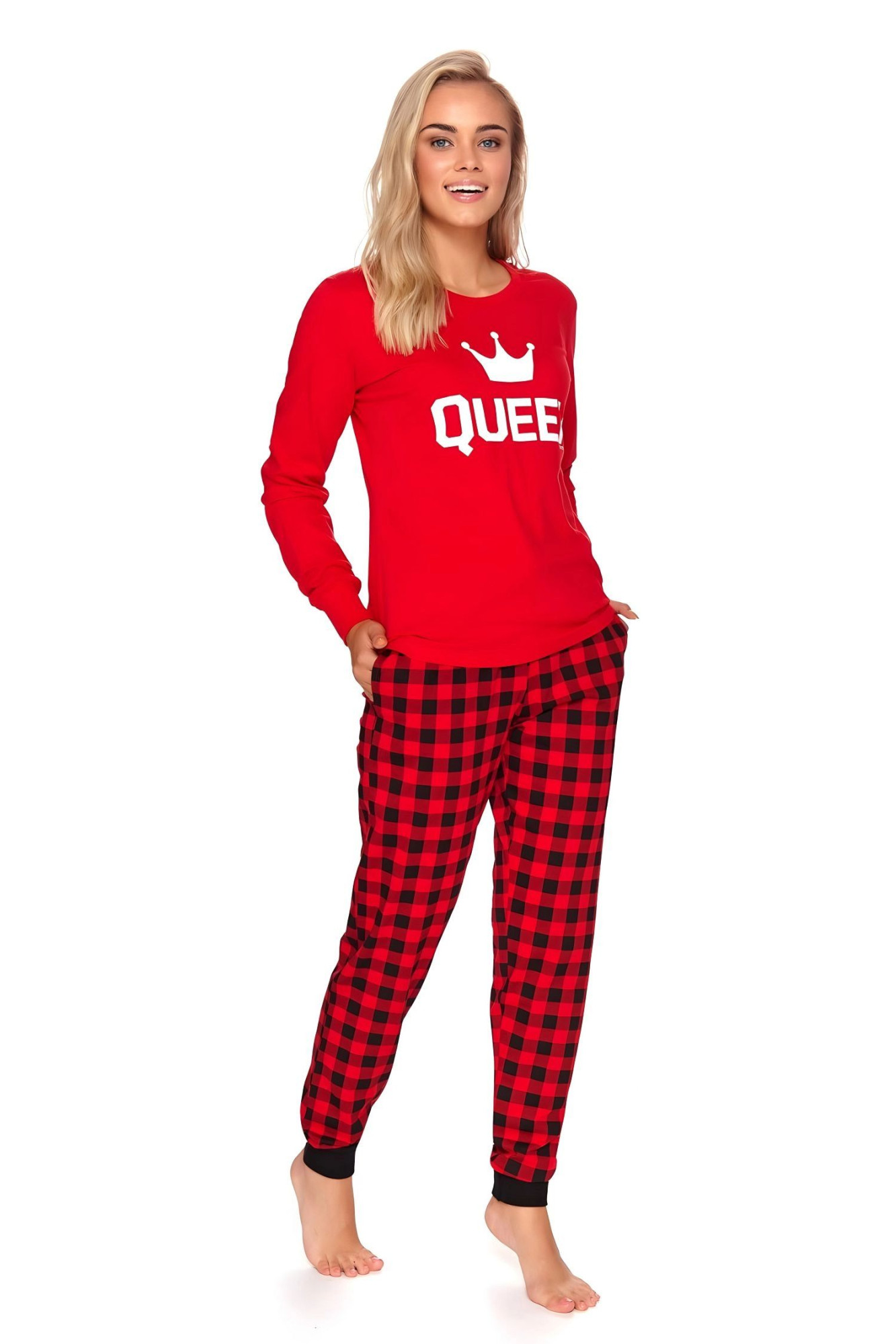 Dámske pyžamo 9748 Doctornap - vyrobené z kvalitnej bavlny - červené tričko s dlhými rukávmi - na prednej strane zdobené nápisom QUEEN - dlhé kárované nohavice s vreckami - certifikát OEKO-TEX Standard 100 Zloženie materiálu: 100% bavlna
