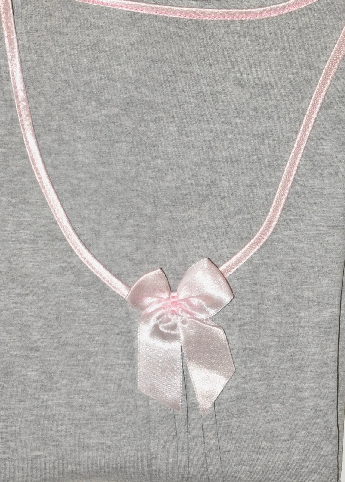 Dámske pyžamo z kvalitnej viskózy 94%, s prímesou elastanu.Vršok s dlhým rukávom, výstrih guľatý, obšitý saténovým lemom, dekorovaný mašličkou a jemným pokrčením. Nohavice jednofarebné, 3/4.