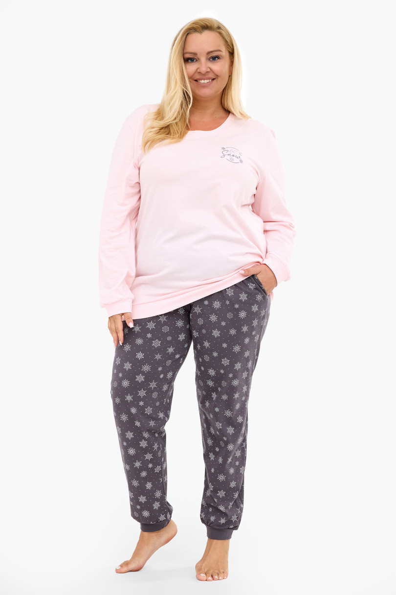 Dámske pyžamo Cornette DR 163/461 Snow BIG je ideálnou voľbou na zimné večery a sviatočné obdobie, je vyrobené zo 100 % kvalitnej mäkkej bavlny, ktorá zaručuje pohodlie, teplo a voľnosť pohybu. Tričko s dlhým rukávom zdobí farebná potlač so sviatočným motívom, ktorá vás jedinečne naladí. Súčasťou súpravy sú dlhé nohavice so sviatočným vzorom. Výstrih, manžety, lem a nohavice sú ukončené elastickými pásmi, čo zvyšuje pohodlie. Celá súprava je zabalená v elegantnej škatuli - ideálny darček na Vianoce.