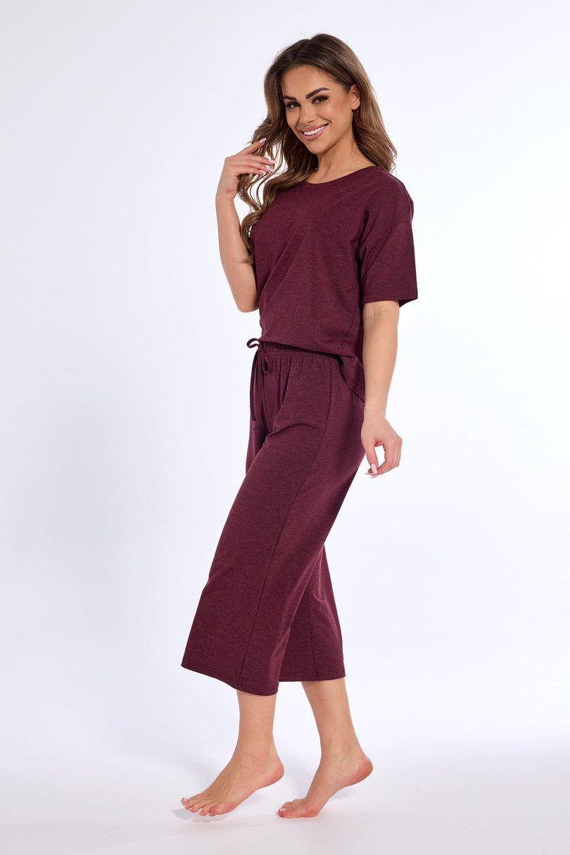 Dámske pyžamo Angie od značky Cornette spája pohodlie s elegantným štýlom. Je vyrobené z vysokokvalitného melanžového úpletu a kombinuje mäkkosť modalu, priedušnosť bavlny a pružnosť elastanu. Tričko s krátkymi rukávmi a polkruhovým výstrihom zaručuje pohodlie a voľnosť pohybu. Široké šortky sú ideálnou voľbou na teplé noci, zatiaľ čo elastický pás a šnúrky umožňujú dokonalé prispôsobenie. Štýlová a praktická voľba na všetky ročné obdobia! Zloženie: 47 % modal, 24 % bavlna, 24 % polyester, 5 % elastan