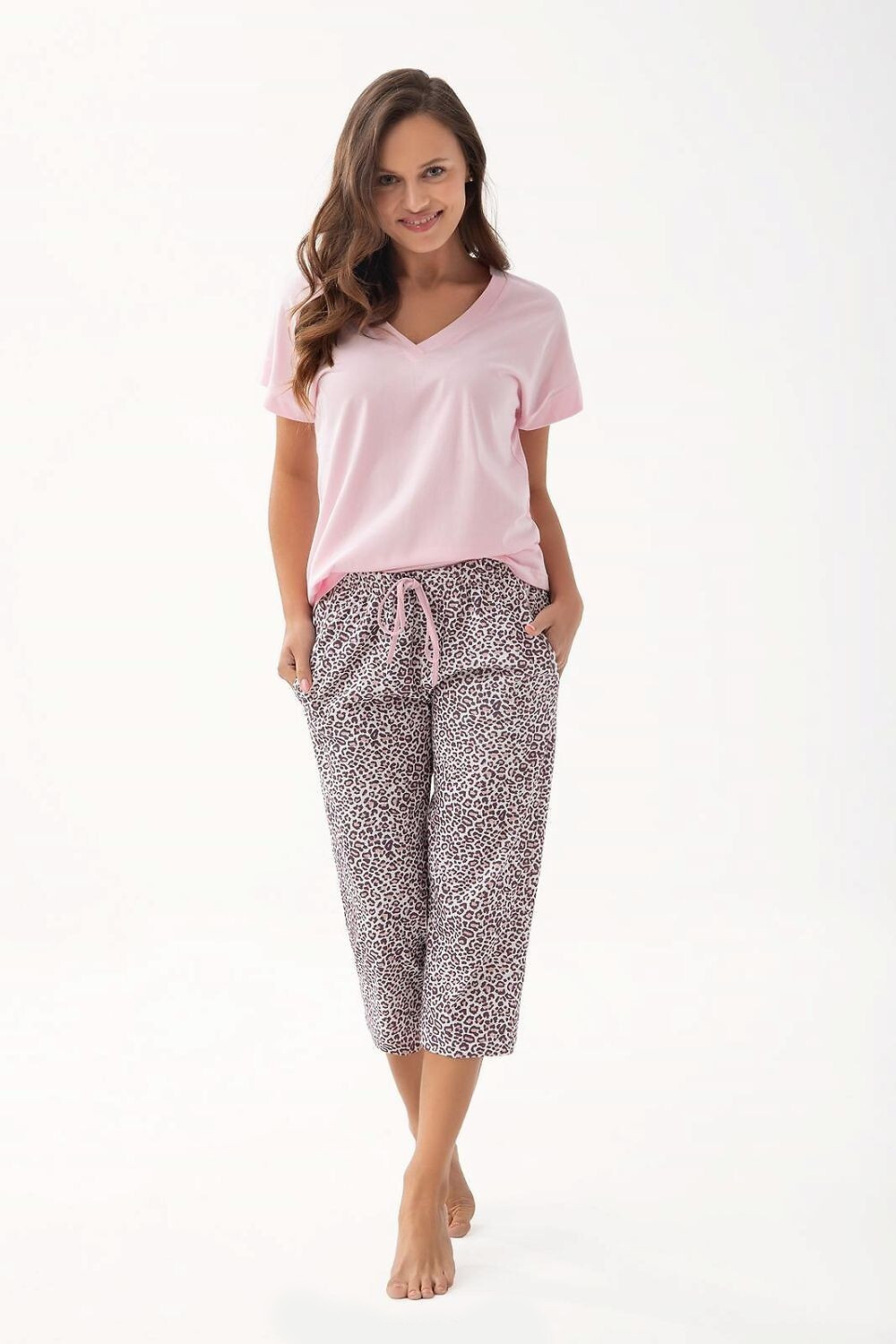 Dámske bavlnené pyžamo - tričko s krátkym rukávom - výstrih do V - pevné sieťované nohavice - pohodlné vrecká na bokoch Zloženie: 100 % bavlna