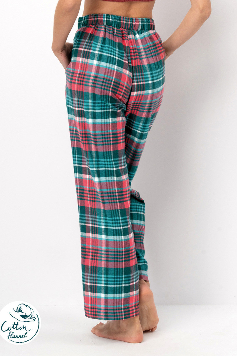 Tieto dámske flanelové nohavice sú ideálnou voľbou na chladnejšie dni a večery. Sú vyrobené z vysokokvalitného bavlneného flanelu, sú výnimočne mäkké a príjemné na dotyk a zároveň výborne izolujú. Klasický rovný strih nohavíc zaručuje voľnosť pohybu, zatiaľ čo pohodlný pás so zapínaním na gombíky zabezpečuje stabilné nosenie. Zeleno-červený károvaný vzor im dodáva slávnostný, útulný pocit, takže sú ideálne na pyžamo aj pohodlné domáce oblečenie. 100 % bavlnený flanel