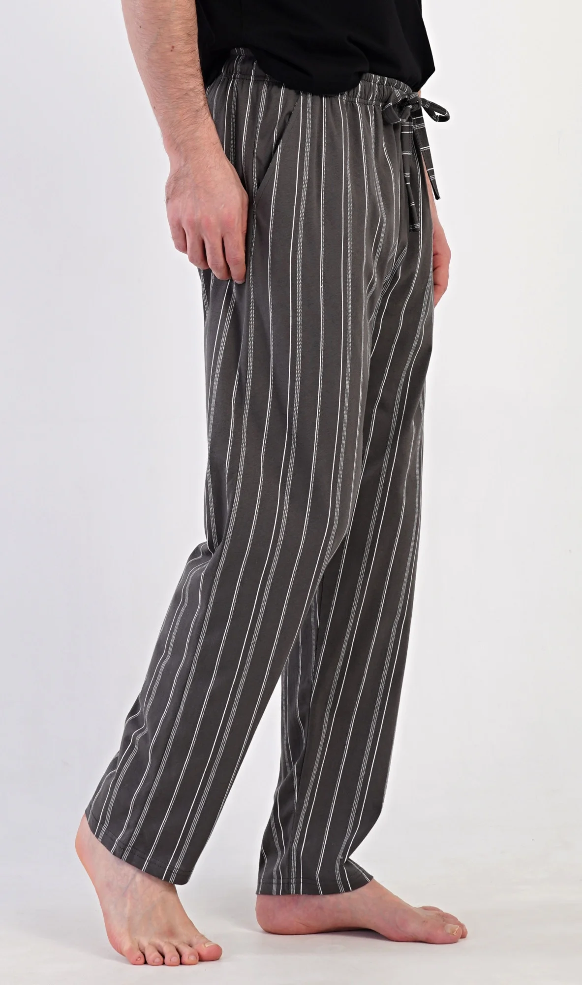 Pánské bavlněné pyžamové kalhoty Nathan. Proužkované kalhoty mají v pase gumu, šňůrku na stažení a praktické kapsy. Mateiriál s podílem bavlny 100% je příjemný a poddajný na dotek. Pokyny pro údržbu: - 100% bavlna- lze prát v pračce při teplotě do 30°- nesušit v sušičce- žehlit z rubu do 110°- nepoužívat bělící prostředky- nečistit chemicky Míry naměřené na výrobku: 4080831374 Nathan 1XL 2XL 3XL 4XL pas 84-96 90-102 92-104 94-106 délka kalhot 106 108 109 110