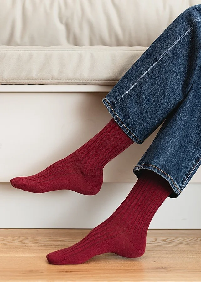 Dámske ponožky, ktoré sú vyrobené z vlny merino. Ponožky sú jemne rebrované, bezšvíkové a majú lem, ktorý pri nosení netlačí. Zloženie: 79% vlna, 20% polyamid, 1% elastan.