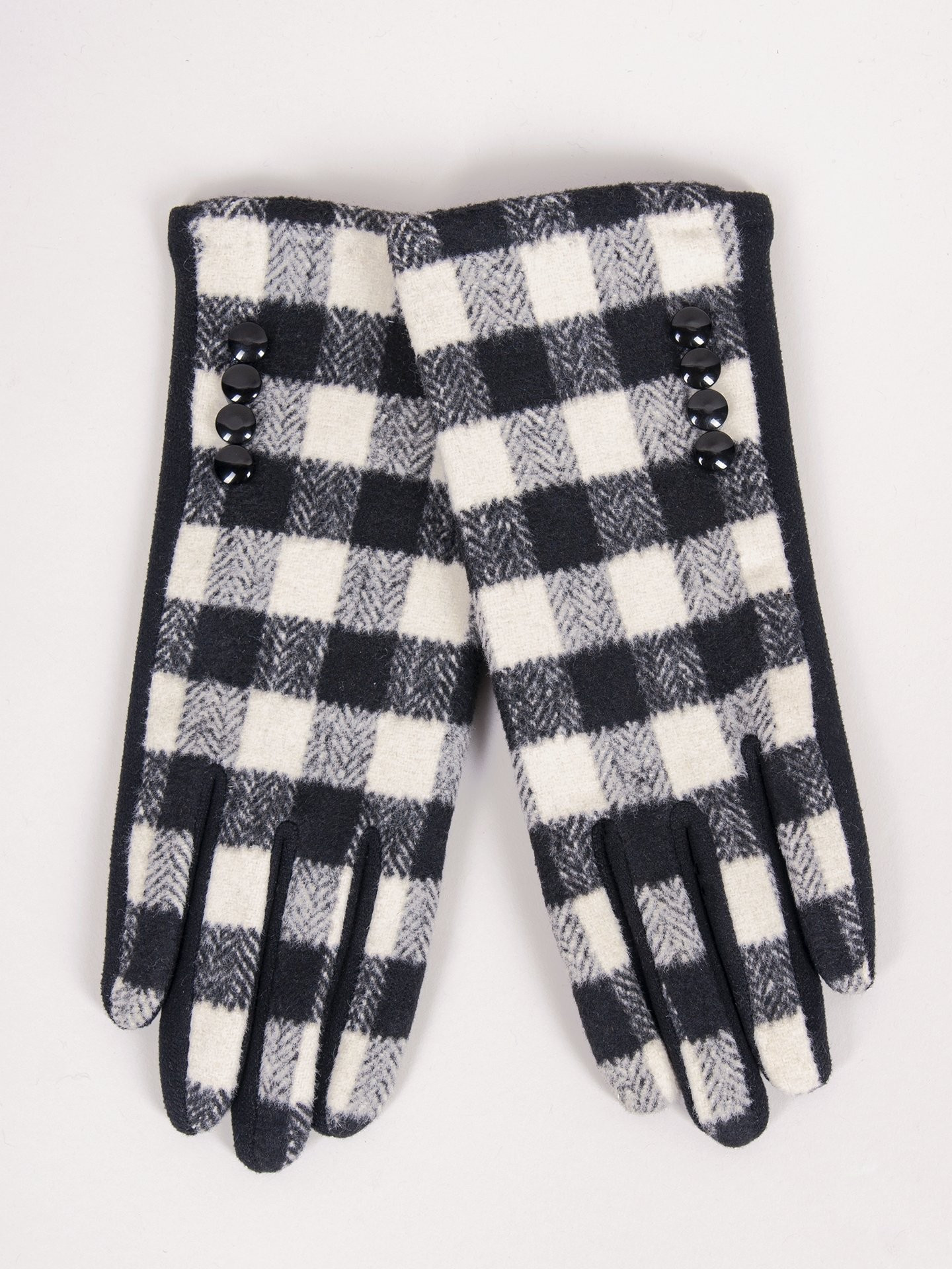 Elegantné, ženské rukavice. v bielej a čiernej farbe. ideálne na každodenný a elegantný štýl. s károvaným vzorom na hornej časti a ozdobnými gombíkmi. materiál vhodný na dotykové ovládanie na končekoch ukazovákov a palcov. pružné na priliehavé nosenie. vnútorná strana polstrovaná mäkkou tkaninou na dotyk. Zloženie materiálu: 90 % polyester, 10 % elastan Category Kolekcia: jeseň/zima Pohlavie: ženské Farba: viacfarebná Pokyny pre starostlivosť: Módny vzor: farebný, farebne odlíšený