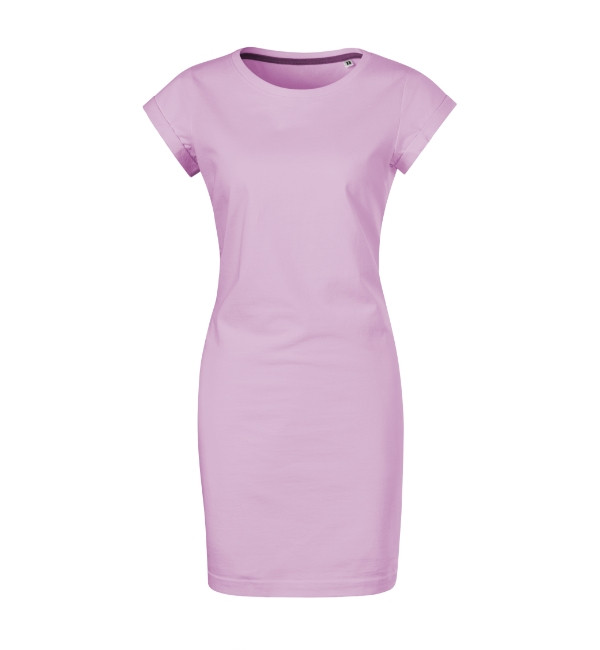 bez štítku - pripravené na zmenu značky voľný, mierne tvarovaný strih s bočnými švami s dĺžkou nad kolená hlbší okrúhly výstrih úzky výstrih z vrchného materiálu s 5 % elastanu neutrálny štítok s veľkosťou v bočnej časti výstrihu vnútorná časť výstrihu zalepená páskou vo farbe 36 spevňujúca páska od ramena k ramenu ohrnuté rukávy zachytené v 4 bodoch šitím