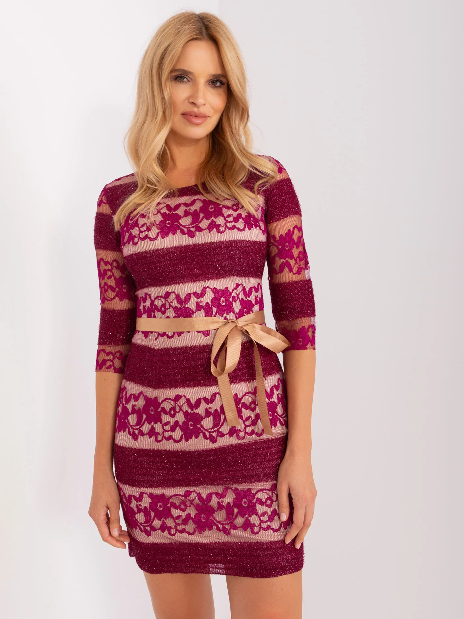 Dámske mini koktailové šaty s čipkou. kód produktu: LK-SK-507231.71P dominantný vzor: látka s rôznorodou textúrou štýl: elegantný príležitosť: večierok, rande, svadba Modelka má na sebe veľkosť 36. Miery modelky: výška 175 cm, prsia 90 cm, pás 66 cm, boky 94 cm. Rozmery šiat vo veľkosti 36 merané na plocho: šírka v podpazuší - 42 cm, celková dĺžka - 89 cm, dĺžka rukáva - 40 cm. Medzinárodná veľkosť Výška Obvod hrudníka Obvod pása 36 S 160-168 82 72-80 38 M 162-172 86 78-86 40 L 164-174 91 84-90 42 XL 166-178 96 88-96