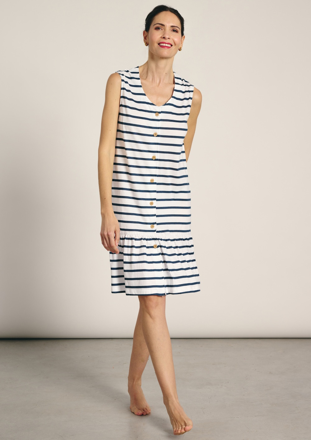 Dámske plážové šaty značky Muydemi, vyrobené z mäkkej bavlny, ideálne na horúce letné dni. Šaty sú voľné, jednoduchého strihu s dĺžkou nad kolená. Šaty majú okrúhly výstrih a široké ramienka. Zloženie materiálu: 95% bavlna, 5% elastan