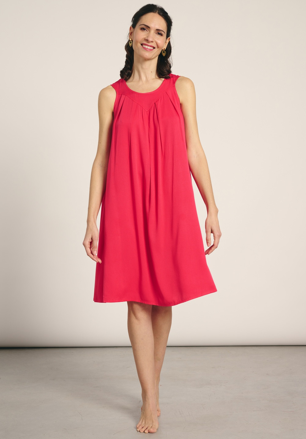 Dámske plážové šaty značky Muydemi, vyrobené zo 100 % viskózy, ideálne na horúce letné dni. Šaty sú voľného, jednoduchého strihu s dĺžkou nad kolená. Šaty majú širšie ramienka a okrúhly výstrih. Zloženie materiálu: 100 % viskóza.