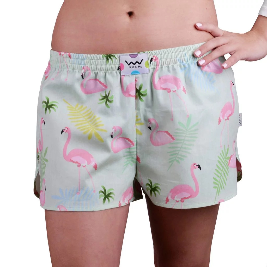 "Môžete sa cítiť ako na exotickej dovolenke, aj keď vonku sneží. Ako? Oblečte si tieto dámske šortky zdobené plameniakom a užívajte si pravú domácu pohodu so všetkým, čo k tomu patrí. Možno s knihou a kokteilom." Originálne dámske šortky Vuch Na obrázku veľkosť M Materiál 100 % bavlna Praktický elastický pás
