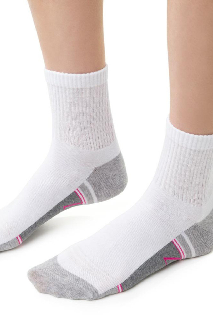 Dámske športové ponožky ušité z kvalitnej česanej bavlny. Zloženie: 78% bavlna, 20% polyamid, 2% elastan