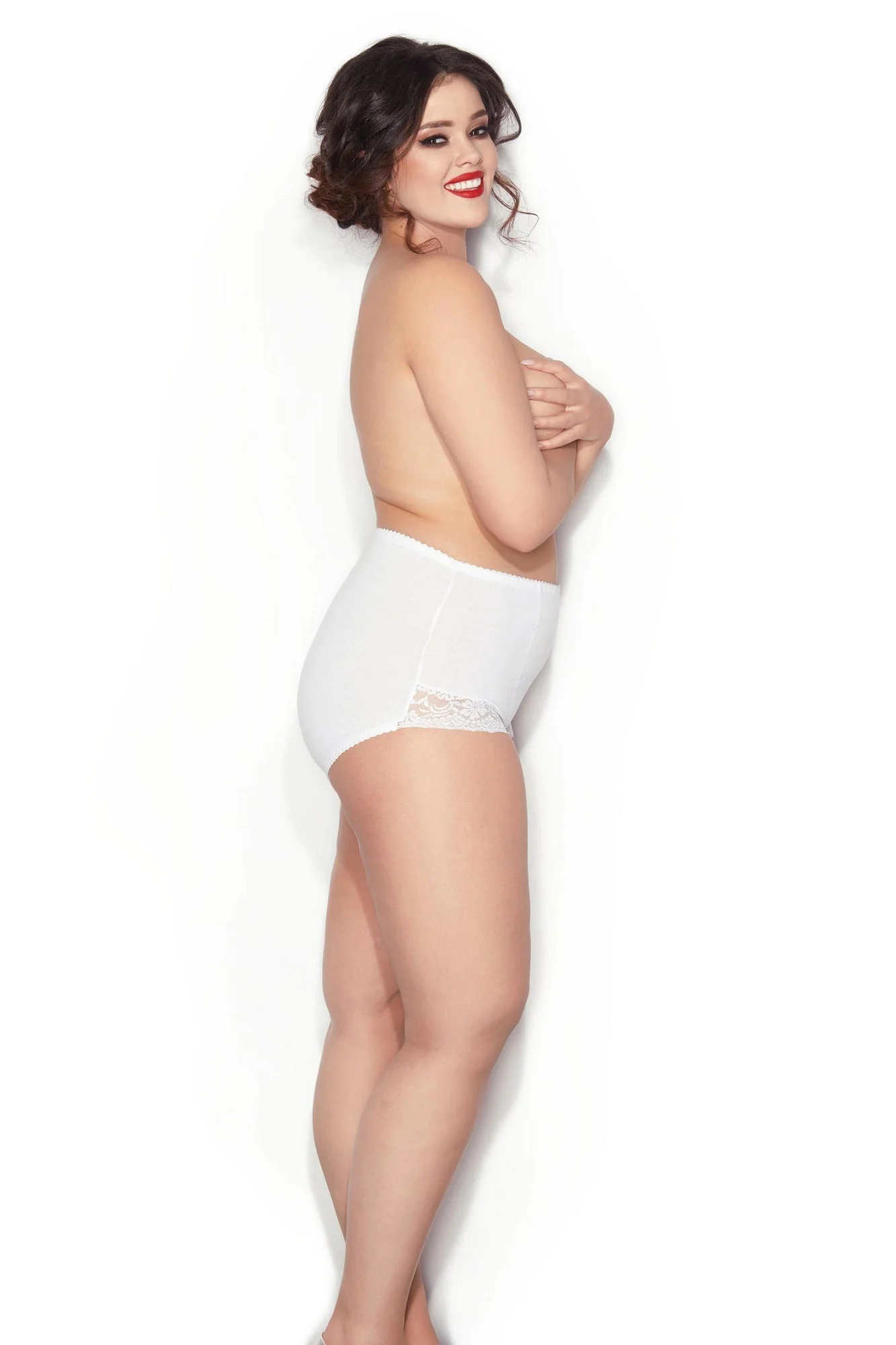 Dámske sťahovacie nohavičky Ela Mitex - biela farba - nohavičky majú ľahko zvýšený pás - príjemný, pevný materiál - obopnú oblasť bokov a časť bruška - elegantný dizajn - nohavičky sú lemované čipkou v rovnakej farbe - pod oblečením nejdú vidieť Materiálové zloženie: 85% polyamid + 15% elastan