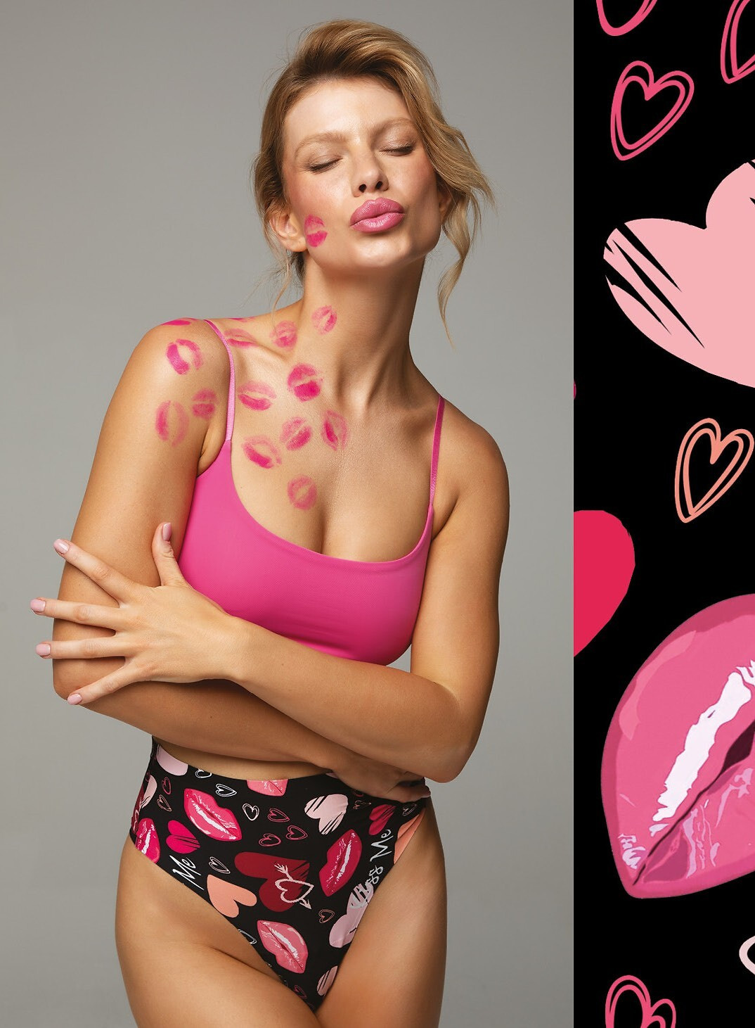 Dámske tangá - pútavá potlač pier a srdiečok - na bokoch - s ultratenkou úpravou okrajov s technológiou INVISIBLE_LINE -netlačí, neukazuje sa pod oblečením - poskytuje pocit ľahkosti a pohodlia - balené v škatuľke s ozdobným srdiečkom - ideálne ako darček Zloženie: 89 % polyamid, 10 % elastan, 1 % bavlna