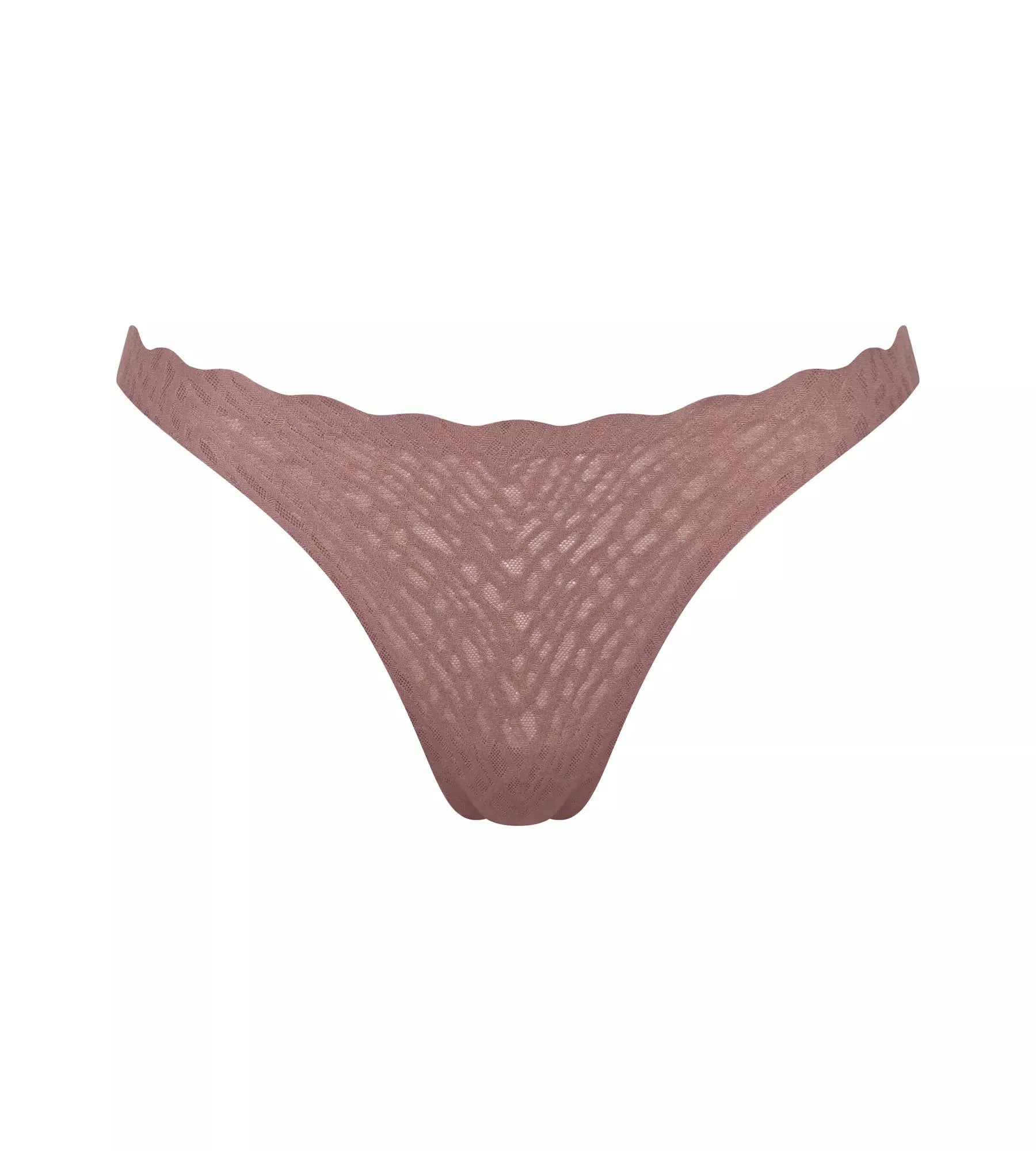 Tieto string nohavičky ZERO Feel Bliss z romantickej, 360° elastickej čipky poskytujú bezšvové, neviditeľné pohodlie. Voľne strihané okraje poskytujú hladký vzhľad bez VPL. String nohavičky s úzkymi bokmi 360° elastická grafická čipka Recyklovaná tkanina s certifikátom GRS Voľne strihaný nariasený pás sa prispôsobí pokožke, takže sa nekrčí. Žiadne kostice, žiadne štítky, žiadne švy pre pocit druhej kože Možno kombinovať s nohavičkami rovnakého štýlu OEKO-TEX® STANDARD 100, 22.0.22419 Hohenstein HTTI 76% polyamid, 24% elastan