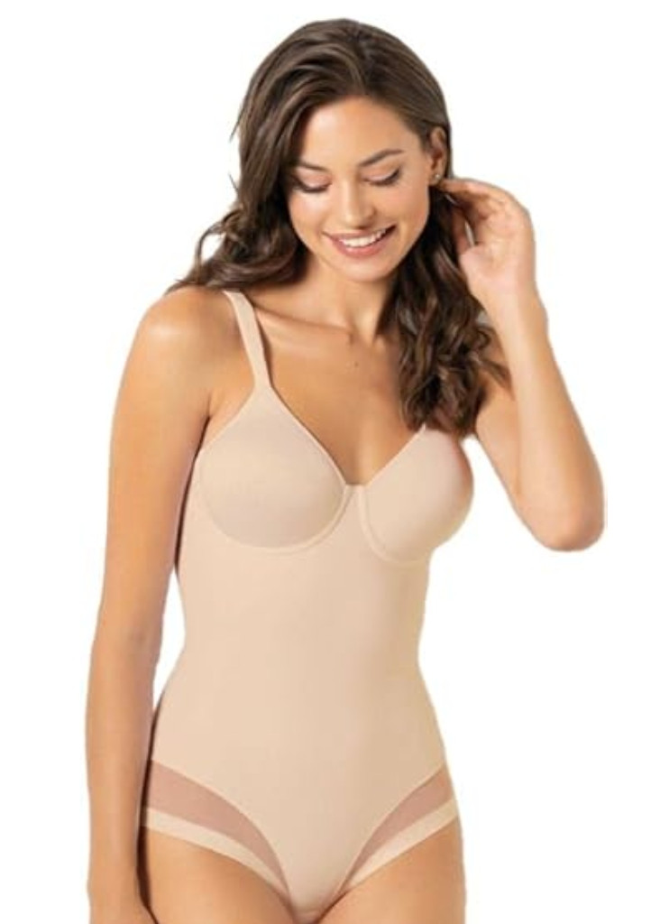 Elegantné dámske body od značky Siélei z novej kolekcie EveryBody s kombináciou čipky. Dokonalý strih, ktorý sa prispôsobí Vašej postave a vykreslí krivky Vášho tela. Dámske body má sťahujúci účinok a vďaka príjemnému mikrovláknu je veľmi príjemné na nosenie. Spacer košíčky sú mierne vystužené flexibilnou penovou výstužou a vďaka kosticiam držia správny tvar. Ramienka sú širšie, dĺžkovo nastaviteľné a sú ľahko vypolstrované. Nohavičky sú bezšvíkové, okraje pružné, takže sa nezarezávajú a pôsobia neviditeľne. Spodná časť body sa zapína na tri háčiky v dvoch radoch a do vnútorného dielu je zapracovaný bavlnený klin.Materiálové zloženie: 64% polyamid, 36% elastan, 84% polyamid, 16% elastan, 100% bavlna