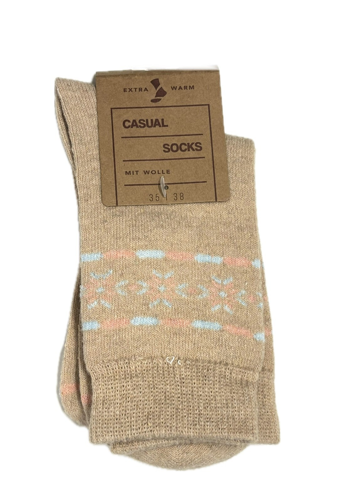 Dámske ponožky na zimu - vysokokvalitná mäkká priadza s vlnou - farebné vzory - ploché švy - pohodlné rebrovanie Zloženie: 35% polyester, 30% polyakryl, 20% polyamid, 12% vlna, 3% elastan