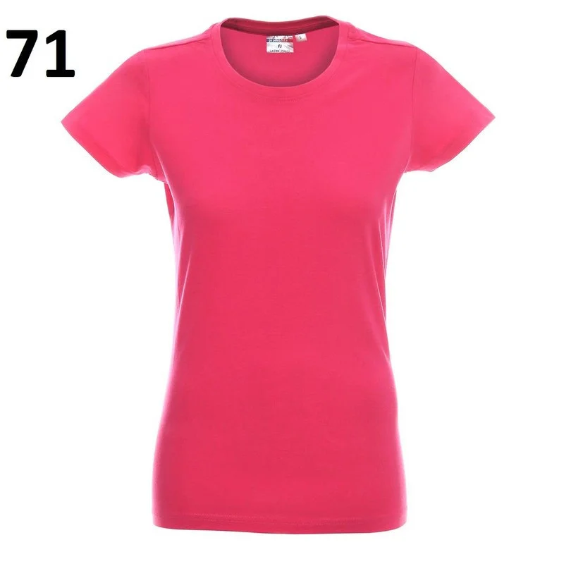 Dámske bavlnené tričko. Má elastické lemy, dvojité švy, zúžené v Podväzkový páse. 100% bavlna poločesaná, gramáž 160 / m2. Promostars je jediným výrobcom textilu, ktorý sa hodí ako na oblečenie na bežné nosenie, na šport, ako pracovný alebo ako reklamný.