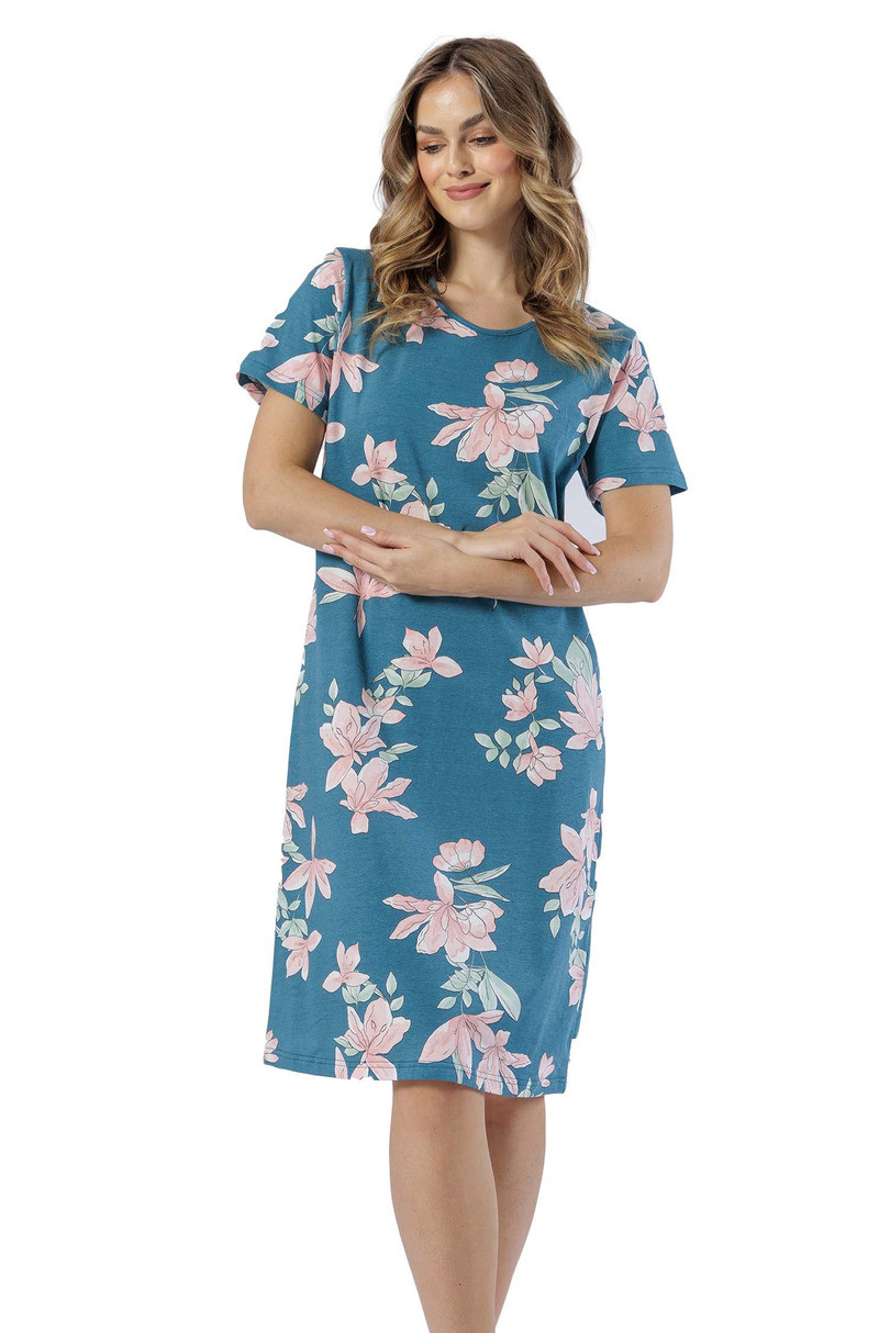Dámske tričko s krátkym rukávom z mäkkej bavlny s kvetmi, okrúhly výstrih, dĺžka po kolenáZloženie: 100 % bavlna .