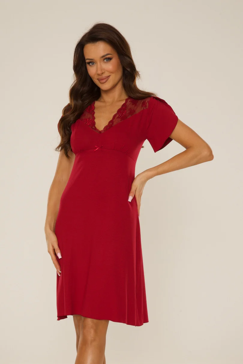 Dámske tričko so vzdušnými krátkymi rukávmi, vyrobené z viskózy s elastanom. Výstrih a zadná časť košele sú zakončené jemnou čipkou. Zloženie: 94% viskóza, 6% elastan