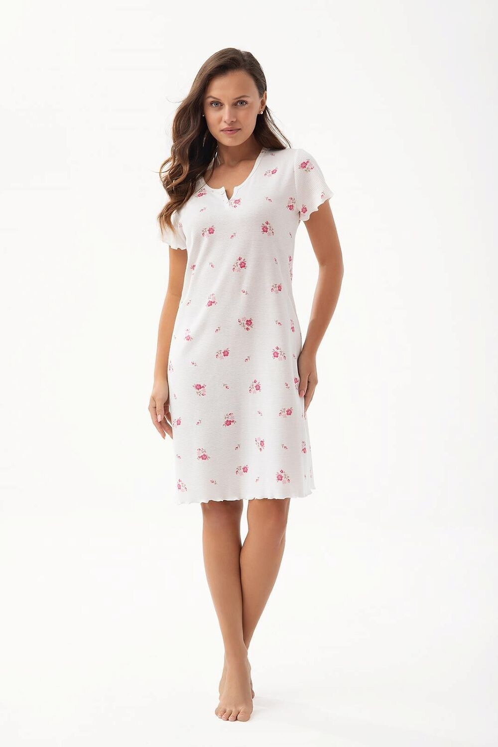 Dámske tričko - vysokokvalitná kvetinová bavlna - úplet s reliéfnym "vafľovým" vzorom - krátke rukávy - výstrih s ozdobným výrezom a gombíkmi - dĺžka pred kolená 100 % bavlna