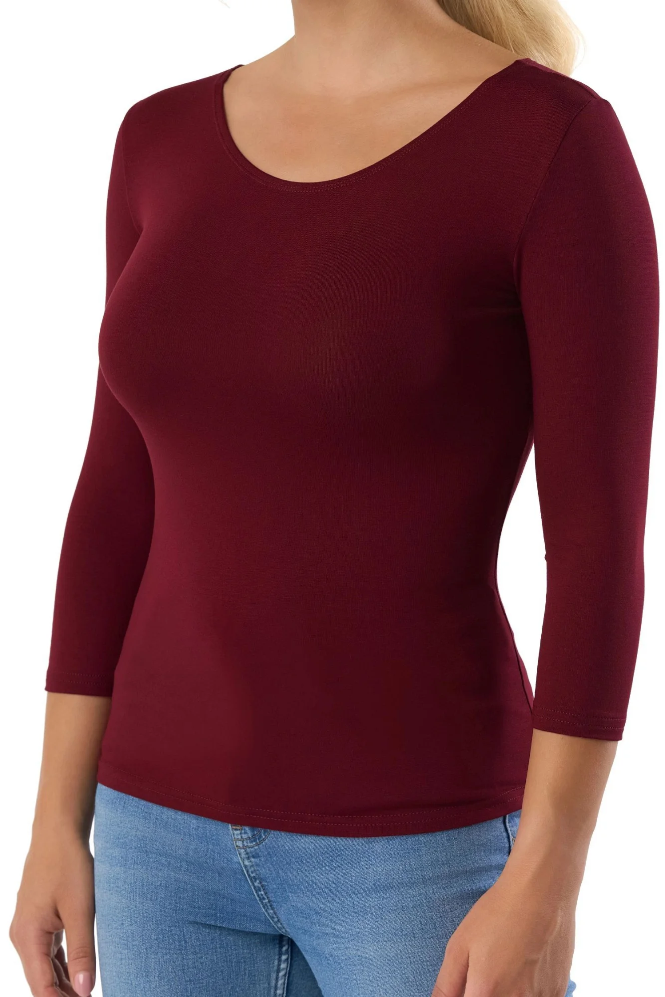 Dámske tričko Manati wine BABELL - bordová farba - vyrobené z mäkkej viskózy s elastanom - okrúhly výstrih - trojštvrťové rukávy - príjemný materiál - jednoduchý dizajn Zloženie materiálu: 94% viskóza + 6% elastan BABELL a BABELLA nohavičky a tangá S M L XL 2XL 3XL Obvod bokov (cm) 88-92 cm 92-96cm 96-100cm 100-104cm 104-108cm 108-112cm Pyžamá, nočné košele a župany BABELL a BABELLA S M L XL 2XL 3XL Obvod prsníkov (cm) 84-88 cm 92-96cm 100-104cm 110-116cm 112-128cm 134-140cm Obvod bokov (cm) 90-94cm 98-102cm 106-110cm 116-122cm 128-134cm 140-146cm