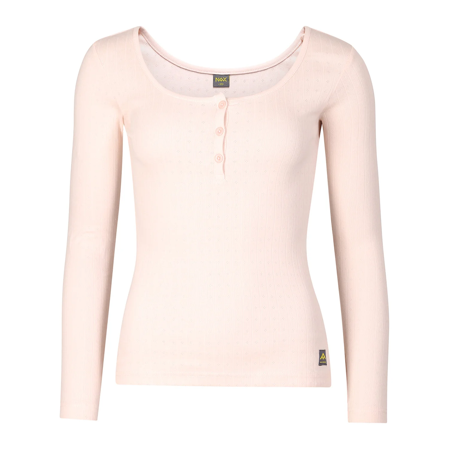 Dámske tričko NAX MAJJA - perleťové Dámske tričko NAX MAJJA v jemnom perleťovom odtieni je ideálnou voľbou pre každodenné pohodlie a ležérny štýl. Elegantný dizajn s gombíkmi a dlhými rukávmi z neho robí skvelý kúsok šatníka na chladnejšie dni - do práce, na voľný čas alebo na bežné nosenie. Tričko je vyrobené z kvalitnej 100 % bavlny, ktorá je mäkká, priedušná a veľmi príjemná na dotyk. Strih slim fit krásne kopíruje siluetu, zatiaľ čo decentný dizajn s gombíkmi pri výstrihu mu dodáva ženský a čistý vzhľad. Kľúčové vlastnosti: Materiál: 100 % bavlna - prírodný, priedušný a príjemný materiál Úzkystrih - lichotivý a prispôsobivý Rukávy: dlhé - vhodné na jar a jeseň alebo ako základná vrstva Výstrih: okrúhly so zapínaním na 3 gombíky Farba: perleťová - jemná, ľahká a ľahko kombinovateľná Dizajnové prvky: efektná nášivka/logo NAX na prednej strane Tričko MAJJA je skvelou voľbou pre ženy, ktoré ocenia kombináciu pohodlia, jednoduchosti a jemného ženského štýlu. Skvele sa hodí k džínsom, sukniam a pod mikinu alebo sveter.