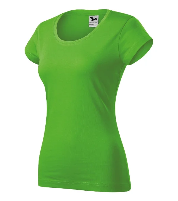 mierne priliehavý strih s bočnými švami hlbší okrúhly výstrih úzky výstrih z vrchného materiálu s 5 % elastanu vnútorná časť výstrihu utesnená páskou z vrchného materiálu ramenné švy spevnené páskou rukávy kratšia dĺžka silikónová úprava