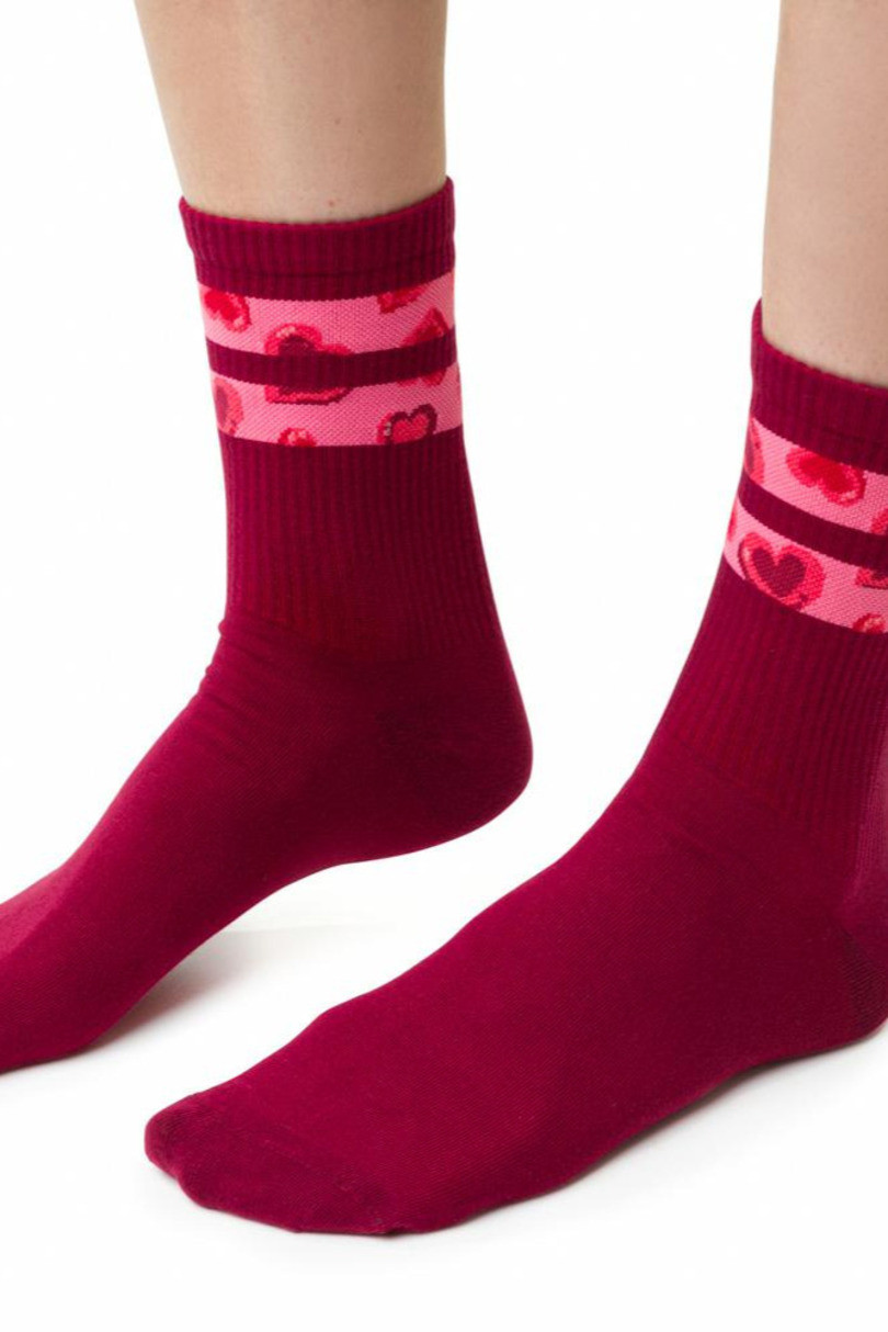 Dámske bavlnené ponožky s valentínskymi motívmi. Zloženie: 69% bavlna, 23% polyamid, 5% polypropylén, 3% elastan.