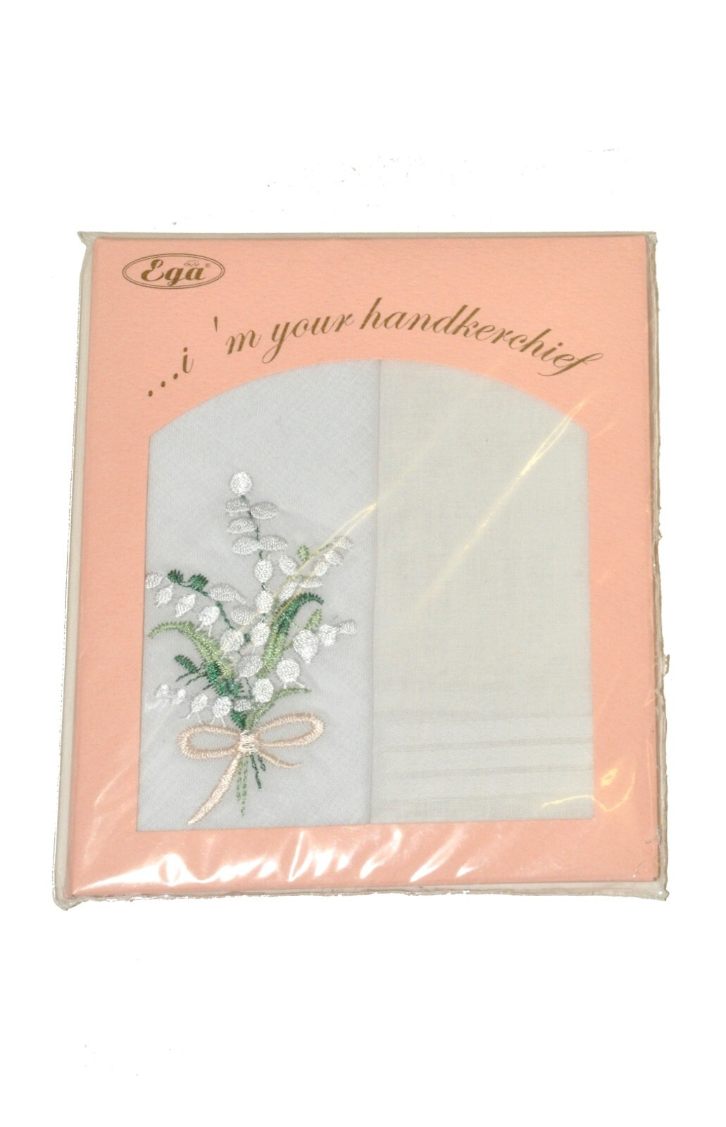 Dámske vreckovky - vyrobené z hladkej, jemne tkanej bavlny - podšité úzkym plochým švom - zdobené kvetinovou výšivkou alebo jemnými prúžkami - balené po dve v páre v plastovom vrecku a kartónovej škatuli - veľkosť 30x30 cm - náhodne vybrané dostupné farby: biela s modrou výšivkou, broskyňová, svetlofialová Zloženie: 100 % bavlna