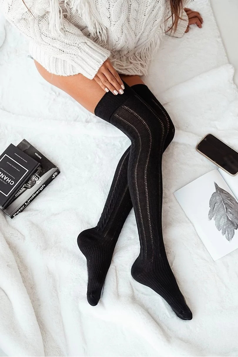Dámske vysoké čižmy nad kolená Pletený vzor 0347.001 - Milena 37-41 černá