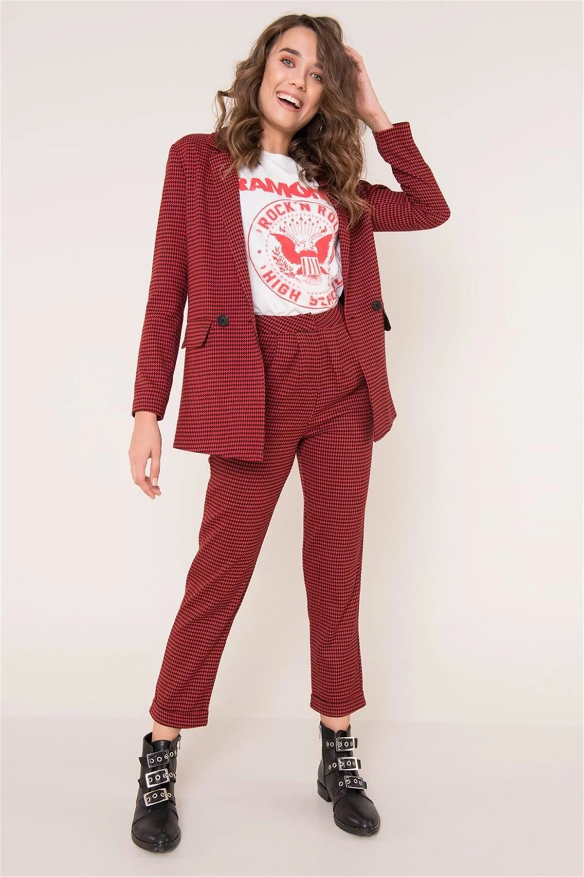 Dámske vzorované nohavice 12586 - FPrice S-36 červená - černá