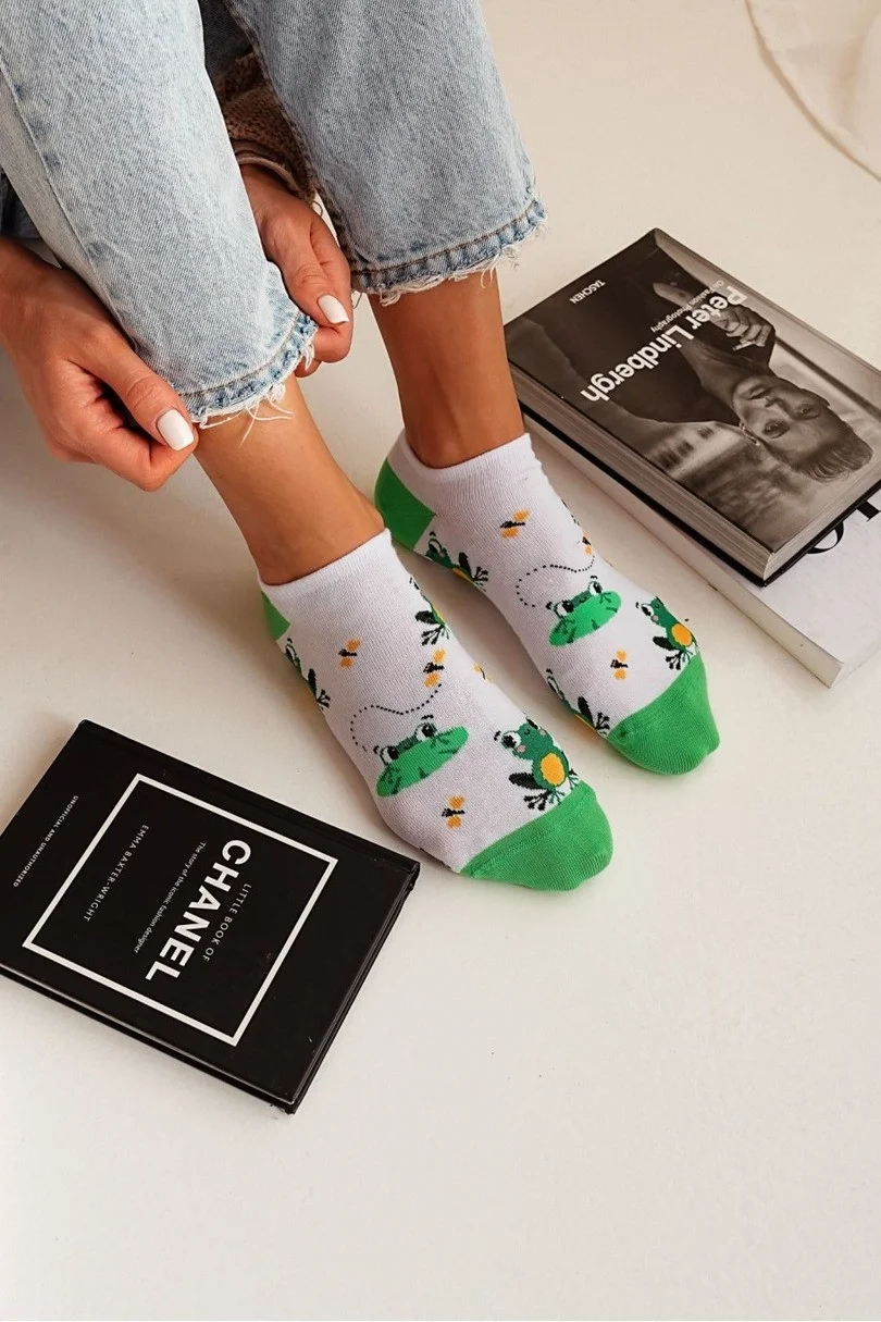 Užite si štýl s rozkošnými dámskymi žabkami ! Tieto žabky sú vyrobené z kvalitnej bavlny a poskytujú výnimočnú mäkkosť, priedušnosť a pohodlie na celodenné nosenie. Elastická tkanina sa dokonale prispôsobí vašim nohám - a hravý vzor žabiek im dodáva jedinečný nádych. Sú ideálne na každodenný štýl - skvele sa hodia k teniskám, teniskám a inej bežnej obuvi..