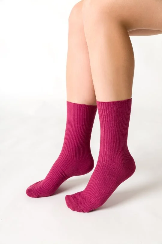 Dámske netlačiace ponožky, ktoré sú vyrobené z veľmi kvalitných materiálov a surovín. Ponožky majú pruhovanú (rebrovanú) štruktúru. Chodidlo je hladké. Model má vytvarované päty a nemá vyznačený lem. Zloženie: 72% bavlna, 26% polyamid, 2% elastan.