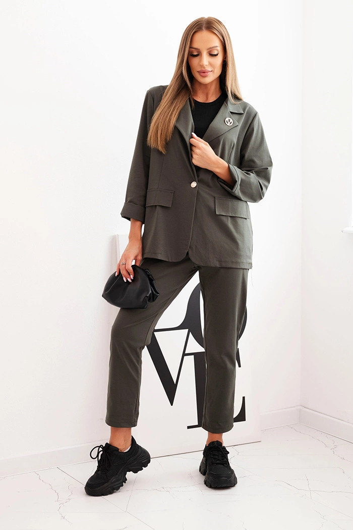 Táto elegantná dámska súprava pozostávajúca z klasického saka a nohavíc je skvelou voľbou pre ženy, ktoré chcú spojiť pohodlie s eleganciou. Sako je voľného strihu, zapína sa na gombíky, má klasický golier a praktické vrecká, vyzerá veľmi štýlovo. Nohavice s elastickým pásom a rovnými nohavicami zabezpečujú voľnosť pohybu a pohodlie počas celého dňa.Vďaka použitiu vysokokvalitnej zmesi bavlny, polyamidu a elastanu je súprava príjemná na dotyk, priedušná a zároveň mierne elastická. Ideálna do práce, na stretnutia alebo elegantné výlety.Vhodné pre dámy vo veľkostiach M,L,XL.vlastnosti výrobku: Vhodný na nosenie v šatách, nohaviciach a v nohaviciach Sako na gombíky s klasickým golierom Praktické vrecká v bunde Nohavice s elastickým pásom Rovné nohavice Mäkká, priedušná a elastická tkanina Vyrobené v Taliansku nižšie uvedené miery sú merané na plocho +/- 1 cmŠírku vynásobte 2, aby ste získali obvodovú mieru Rozmery nohavíc Saka: Šírka pod pazuchami: 57 cm (po otvorení: 62 cm) - Hrudník od cca 114 do 124 cm Celková dĺžka: 73 cm Dĺžka rukávu od ramena: 41 cm Kalhotové miery: Šírka v páse: 35 cm (po otvorení: 45 cm) Šírka v oblasti bokov: 50 cm (po roztiahnutí 55 cm) Celková dĺžka: 93 cm Dĺžka nohavíc od rozkroku: 64 cm Materiálové zloženie:: materiál: 55 % bavlna 37,5 % polyamid 7,5 % elastanu