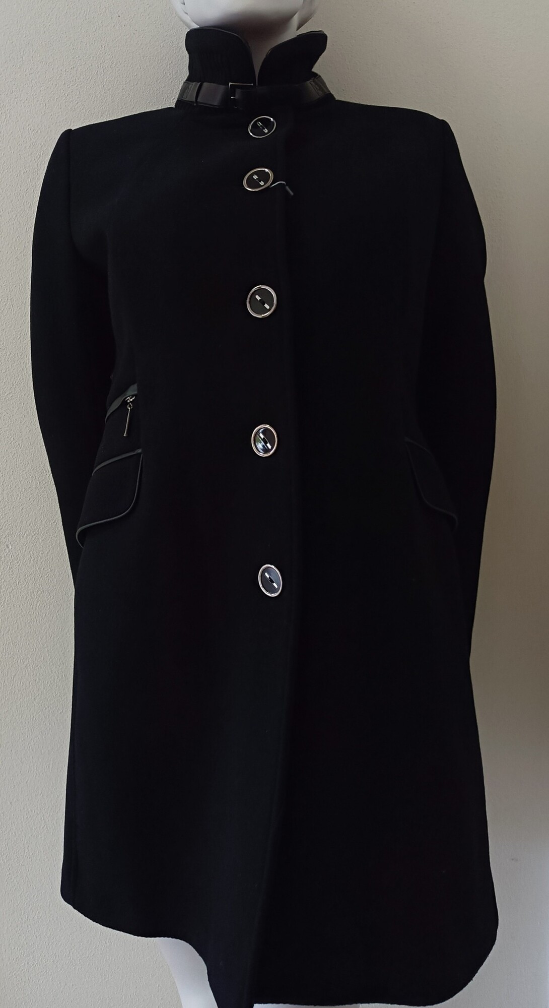 Dámsky luxusný kabát s veľkými gombíkmi Tri ozdobné gombíky na rukávoch vrecko na zips na pravej strane kabáta vrecká s chlopňami na oboch stranách dodatočné zapínanie na pracku pri krku Vnútri zateplený, podšitý lesklou podšívkou Materiálové zloženie: 70 % vlna, 30 % polyester, 100% polyesterová podšívka