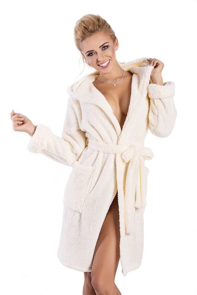 Mäkký nadýchaný dámsky župan v bielej farbe.Zloženie materiálu: 100% polyester