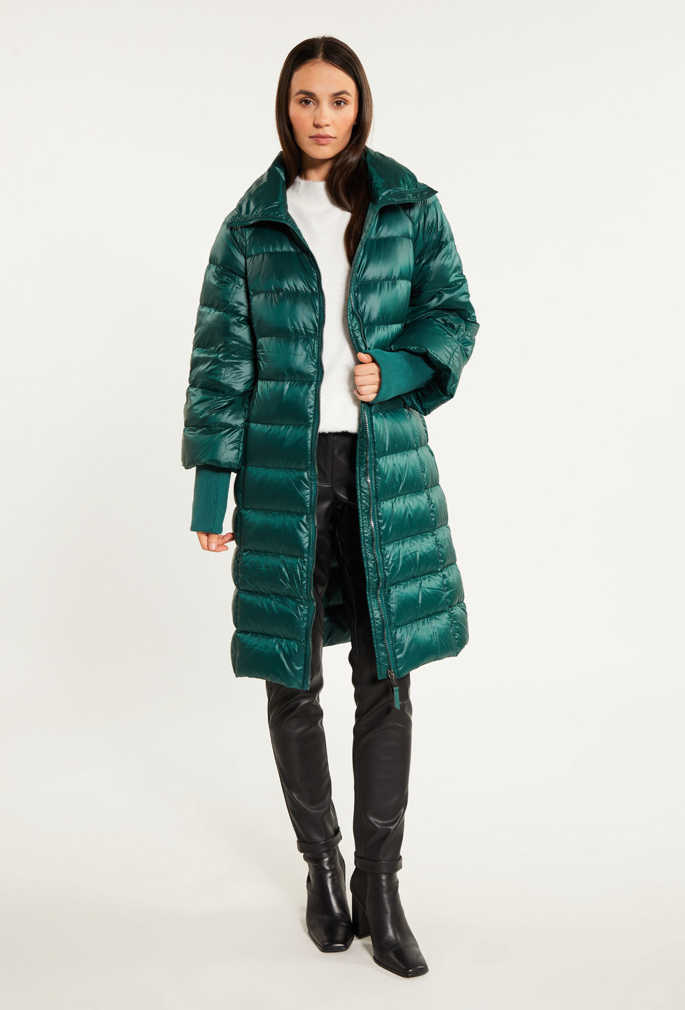 Dámsky dlhý kabát s prešívaním. Dlhé rukávy s lemom na koncoch a vrecká na zips na bokoch. Tento model sa určite uplatní aj počas chladnejších dní. Model na obrázku je vysoký 177 cm a má veľkosť 36. HLAVNÉ VLÁKNO: 100 % POLYAMID, PODŠÍVKA: 100 % POLYAMID, VÝPLŇ: 90 % ĽAN, 10 % VLOŽKY, DOPLNKOVÝ MATERIÁL: 95 % POLYESTER, 5 % ELASTAN Pohlavie: ženské Pokyny na údržbu: Materiál: 100% bavlna Farba: fľaškovo zelená Kategória: dámske oblečenie | Bundy a kabáty