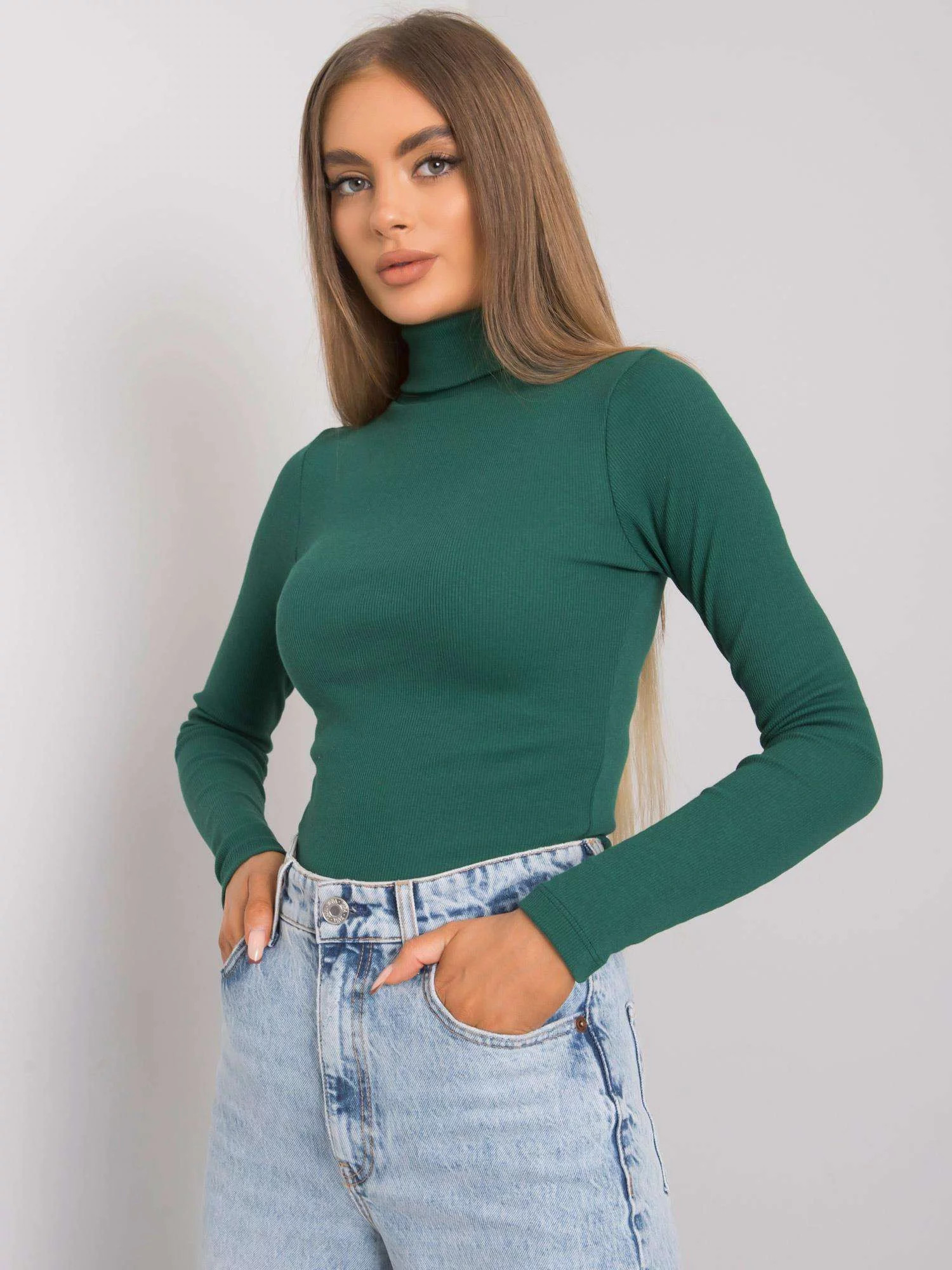 RUE PARIS Tmavozelený rebrovaný rolák pre ženy. typ tkaniny: rebrovaný zloženie tkaniny: 90 % bavlna, 10 % elastan spôsob prania: pranie v práčke pri 30 °C Modelka má na sebe veľkosť S/M. Miery modelky: výška 174 cm, prsia 83 cm, pás 62 cm, boky 96 cm. Rozmery blúzky vo veľkosti S/M merané na plocho: šírka v podpazuší - 33 cm, celková dĺžka - 60 cm, dĺžka rukáva - 60 cm Veľkosť Alt. Výška Obvod hrudníka Hrudník Vonkajšia dĺžka. rukáv Vnútorná dĺžka rukáva S/M 36/38 160-172 82-86 59-61 49-51 L/XL 40/42 164-178 91-96 63-65 53-55