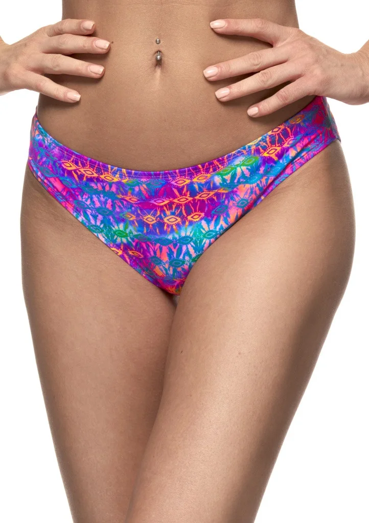 Plavky FANTASY z kolekcie Amy. Plavky klasického strihu majú nižší pás a mierny výrez v prednej časti. Plavky sú farebné a hladké. V páse a na nohavičkách je elastický pás. Celý kúsok je podšitý rýchloschnúcou látkou. S plavkami možno kombinovať akýkoľvek vrchný diel z rovnakej kolekcie. Zloženie materiálu: 80 % polyamid, 20 % elastan.